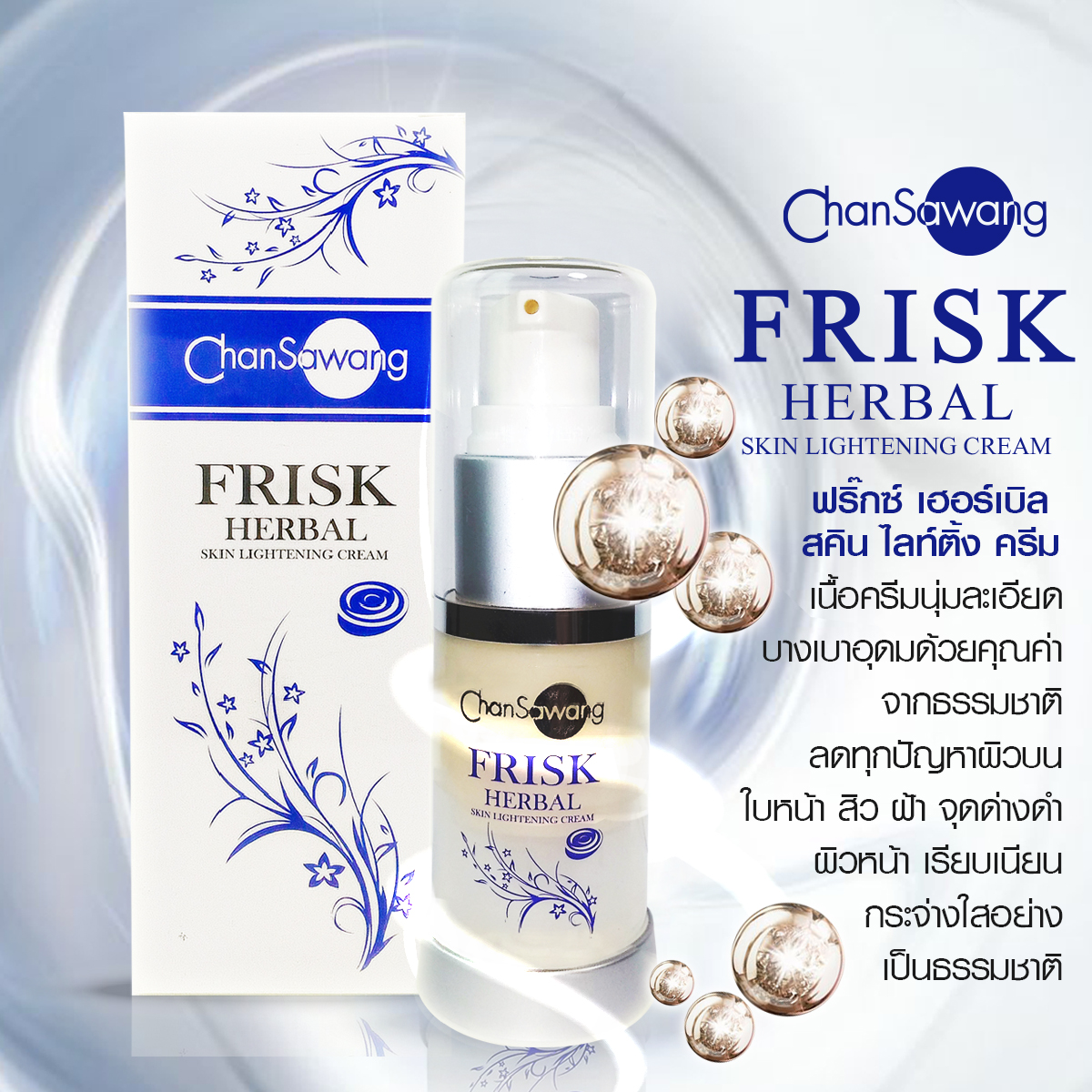 หลังการทำความสะอาดผิวหน้า แต้ม Frisk จุดแล้วเกลี่ยให้ทั่วใบหน้า ทุกเช้า - เย็น